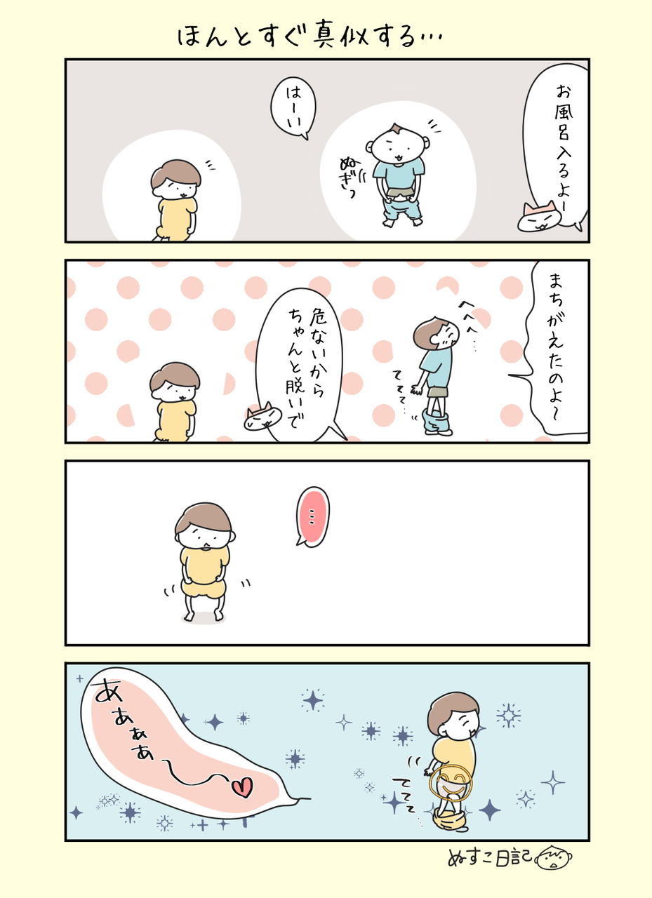 もう本当になんでもすぐに真似するので、かわいいけど困る。